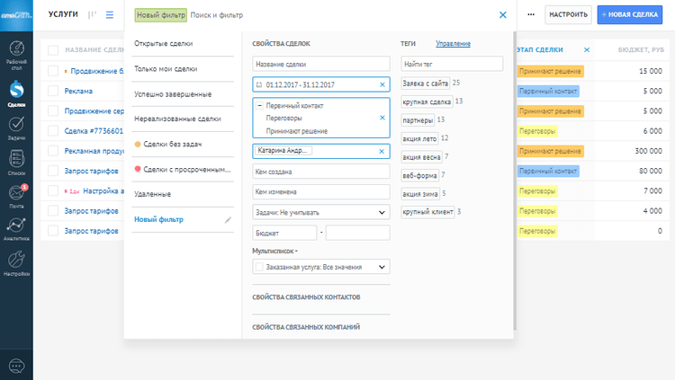 • Точность данных: Позволяет реализовать сложные бизнес-правила и логику на стороне интеграции, запрашивая только те сущности, которые соответствуют заданным критериям (например, "все открытые сделки на этапе Квалификация, ответственный за которые — конкретный менеджер").