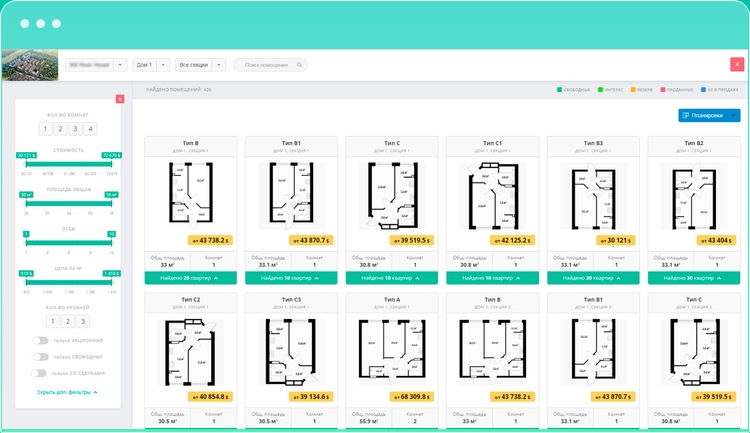 Визуальный выбор квартир (интерактивная шахматка) на сайте ЖК: Инструмент для покупателей, который встраивается в веб-сайт застройщика.